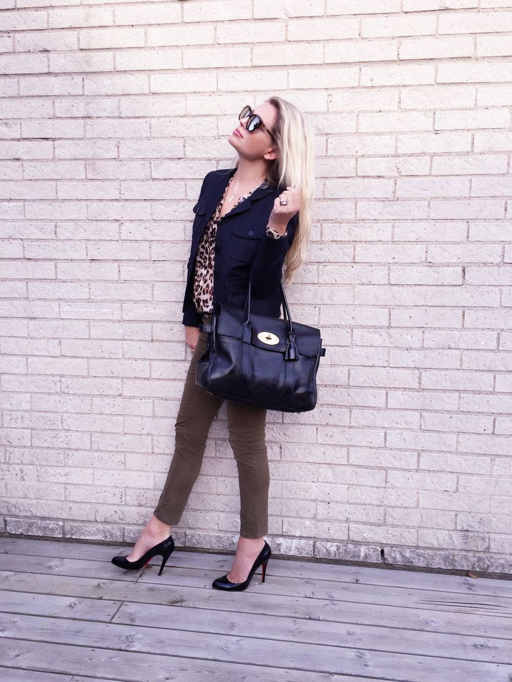 Jacket/ Mulberry. Shirt/Equipment. Shoes/ Chistian Louboutin ”Fifi”. Jeans/ Massimo Dutti. Belt/ Day Birger Et Mikkelsen. Bag/ Mulberry ”Bayswater”. Necklace/Tiffany & Co. Sunglasses/ Le Specs.